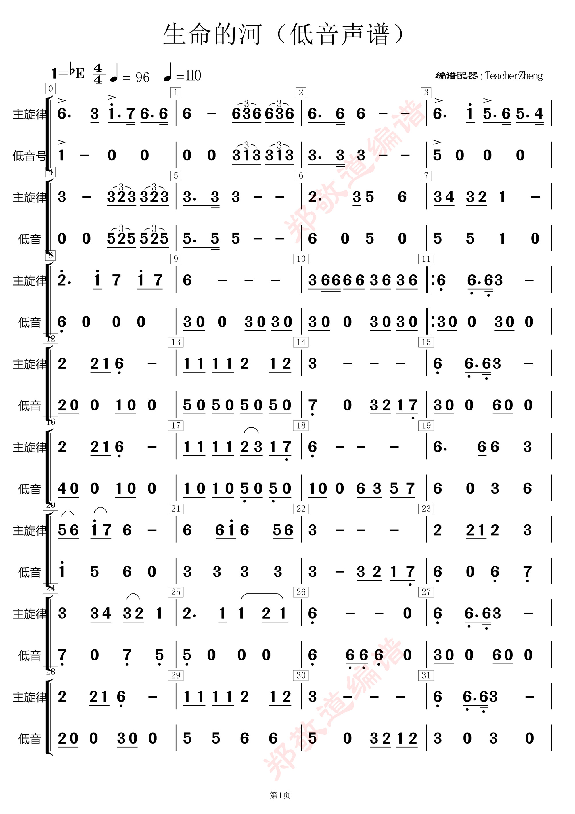 生命的河,又名:唱一首天上的歌(大低音号)分谱