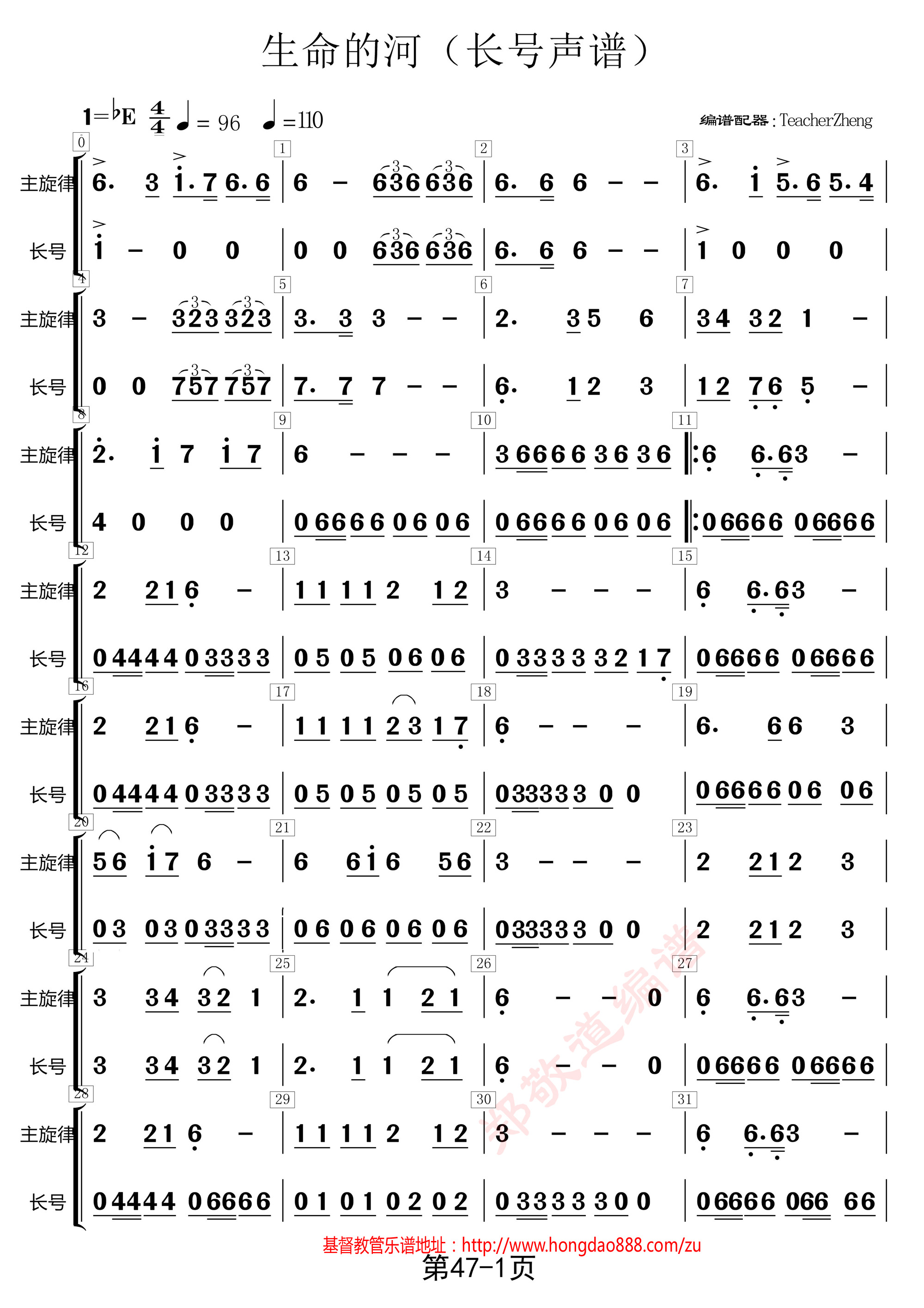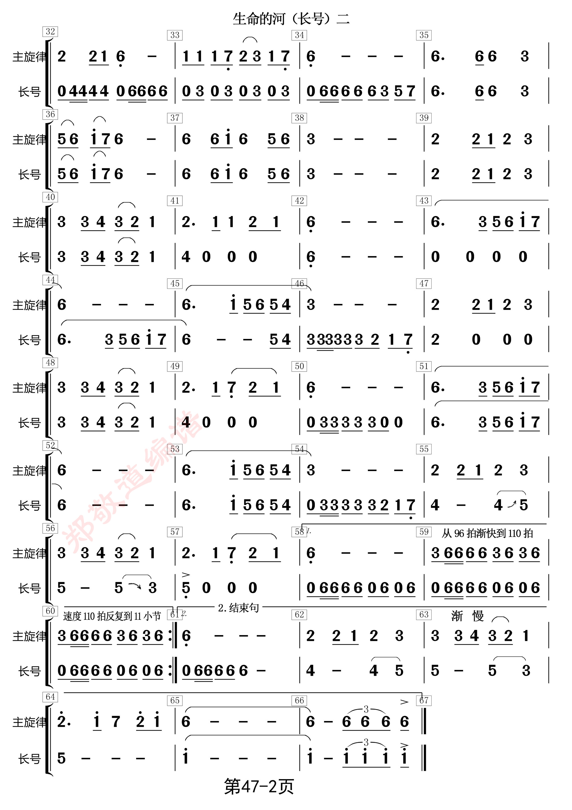生命的河,又名:唱一首天上的歌(长号)分谱
