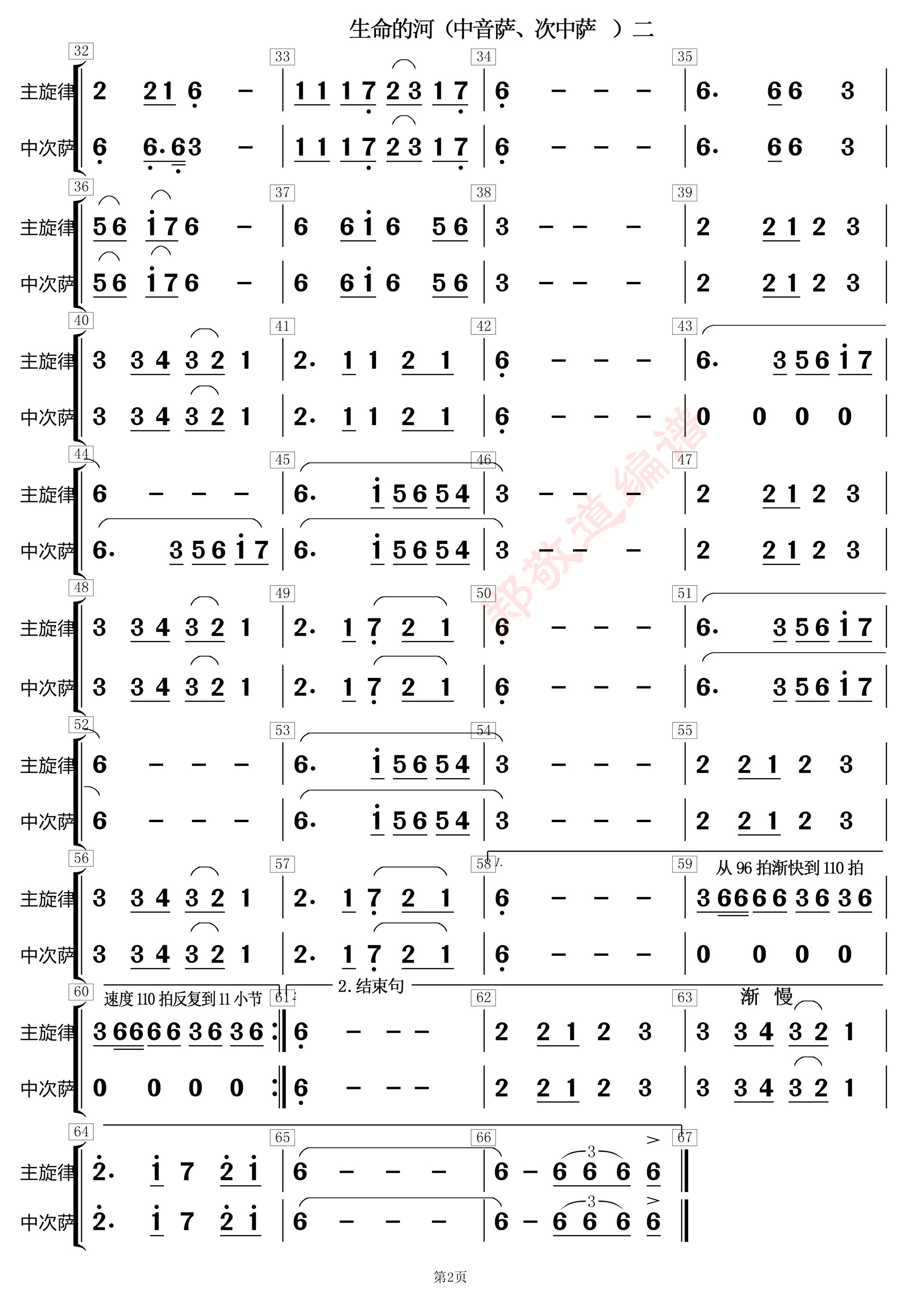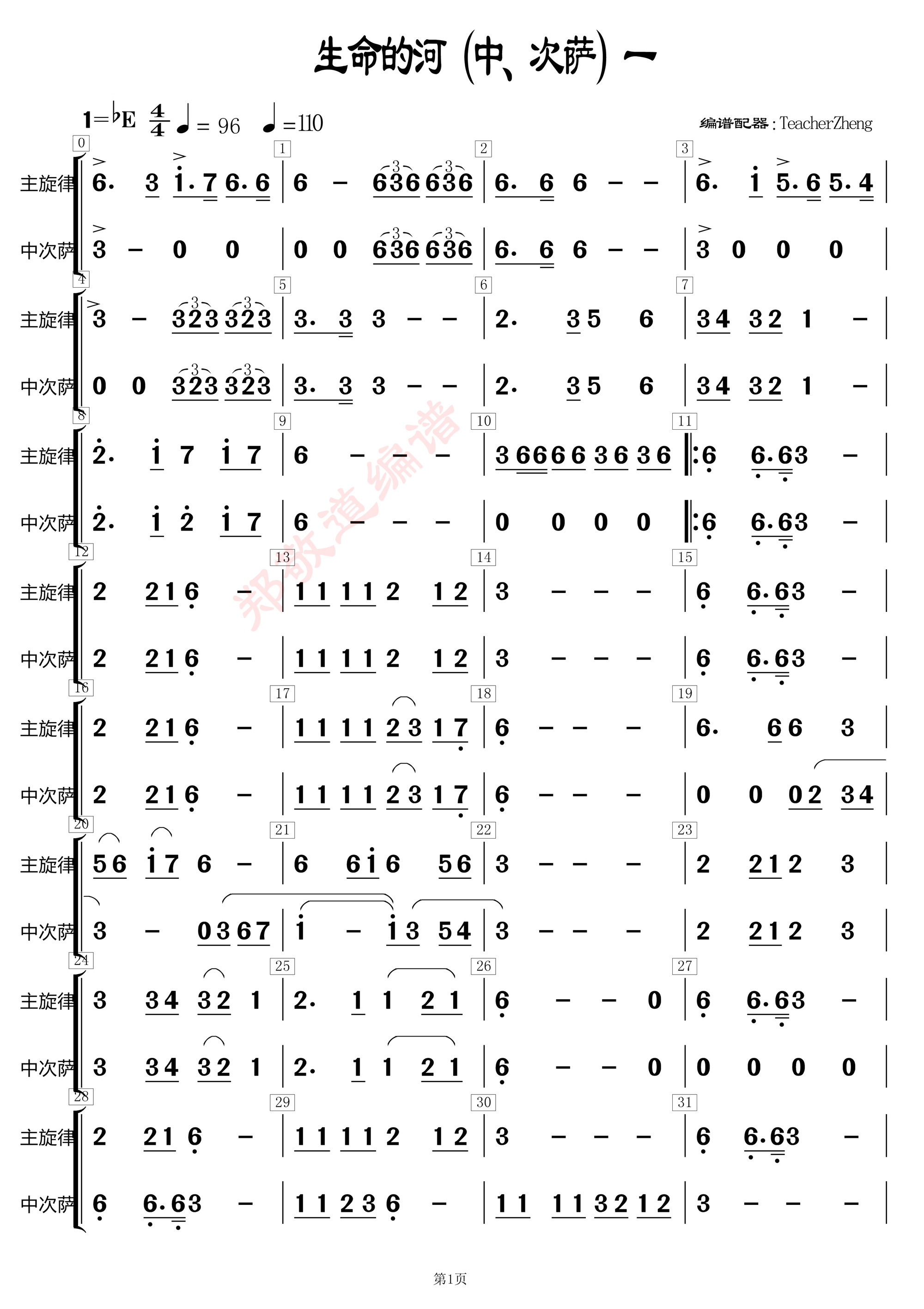 生命的河,又名:唱一首天上的歌(中萨、次萨)分谱