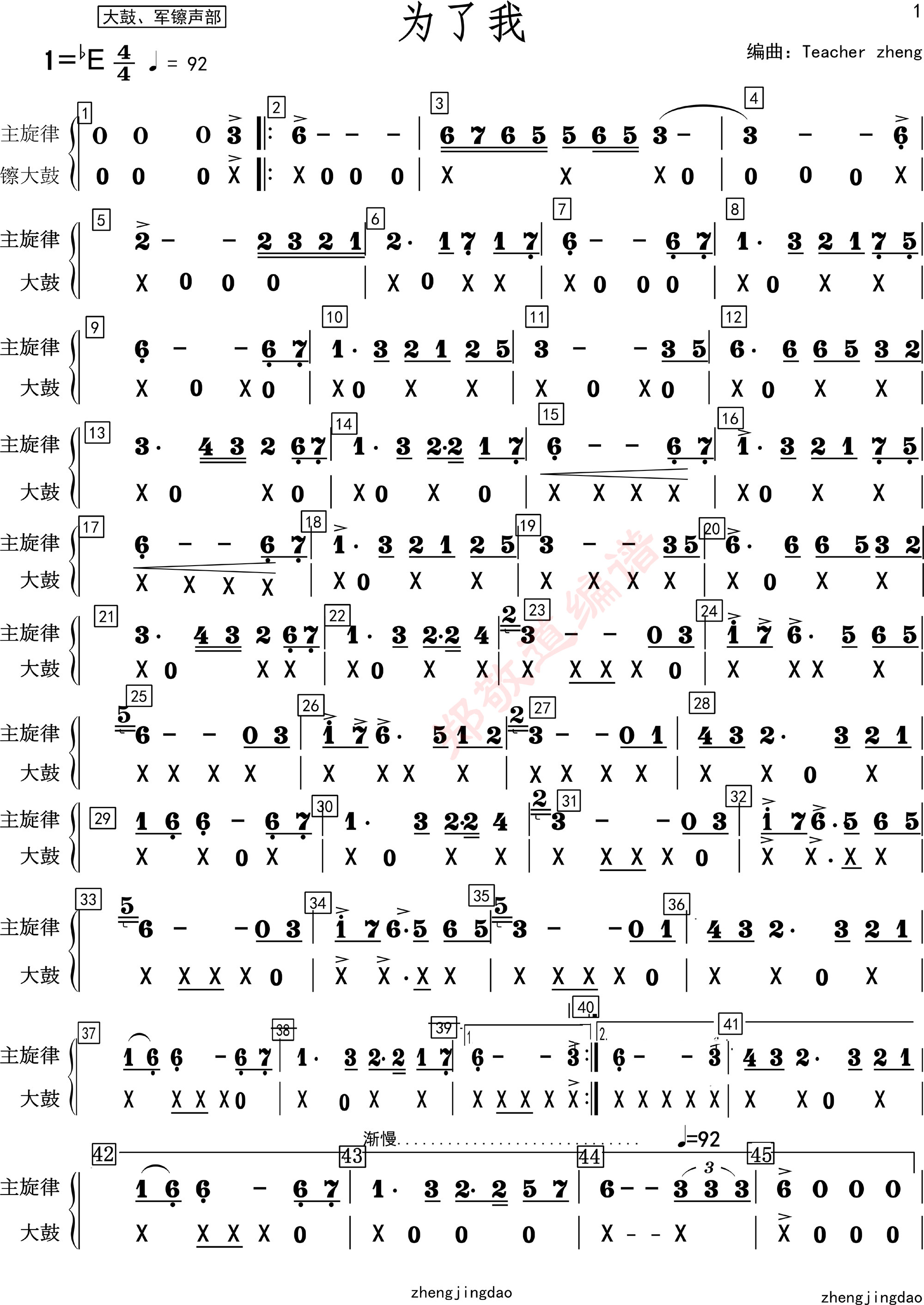 为了我[大鼓、军镲]分谱-郑老师作品