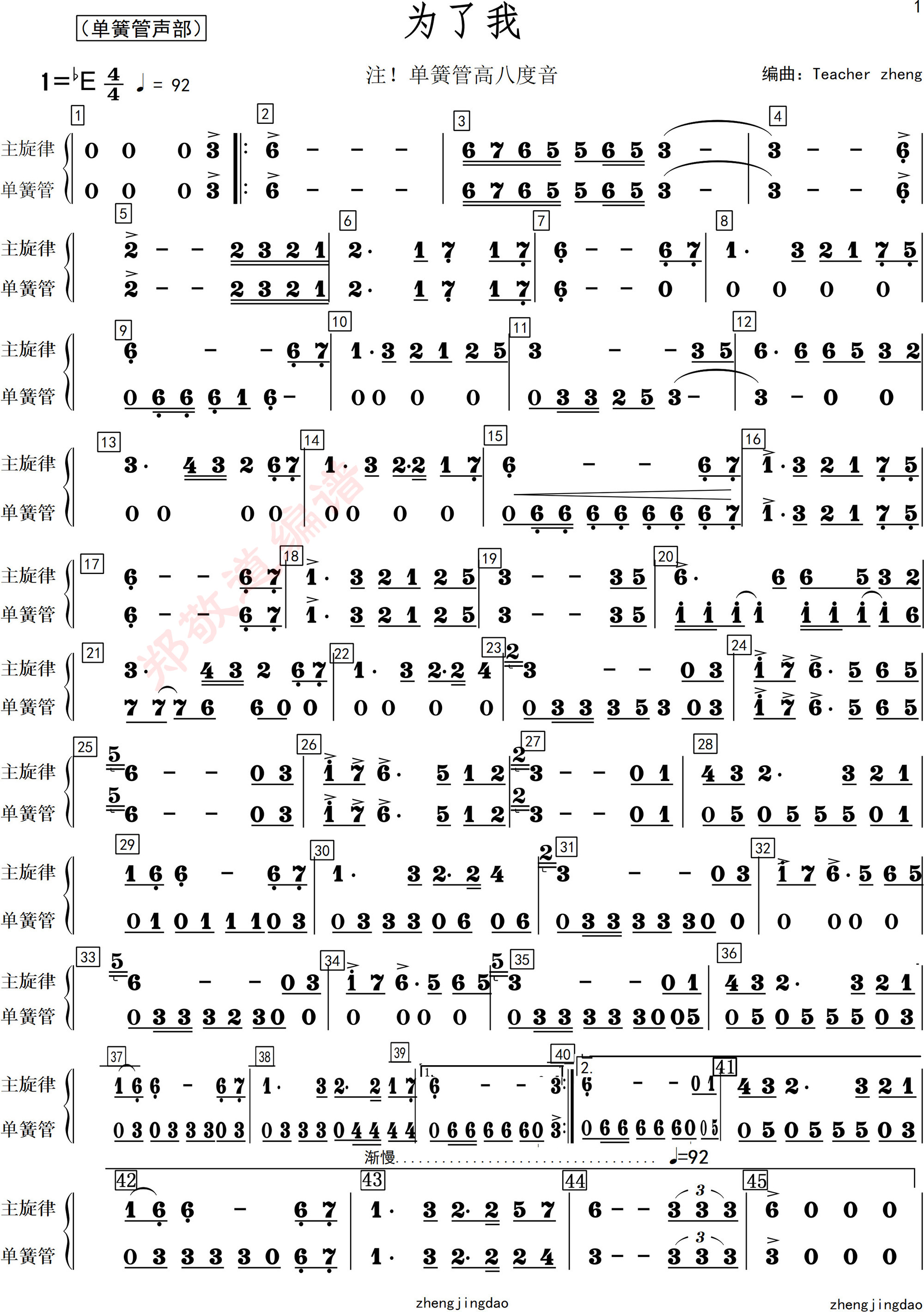 为了我[单簧管]分谱-郑老师作品