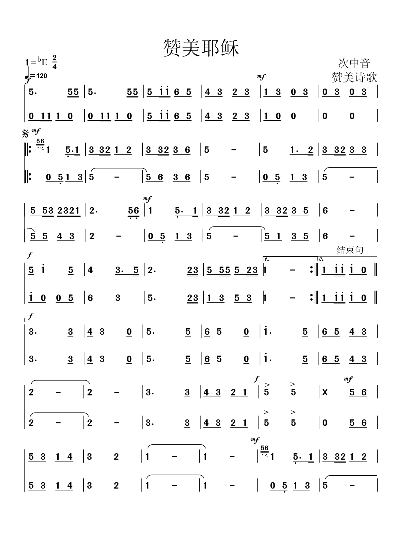 温馨提示:在歌谱图片上用鼠标右击,然后选择“图片另存为”就可以下载该歌谱了!