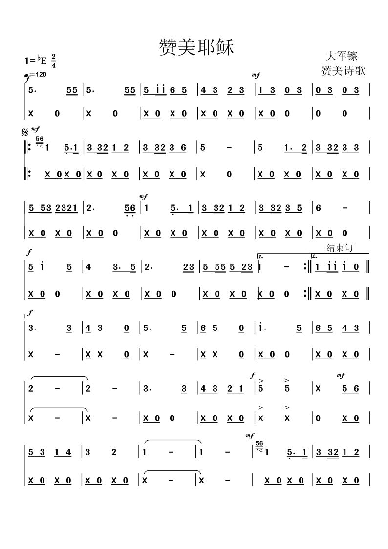 赞美耶稣/赞歌/赞一支最好的琴(大军镲)分谱