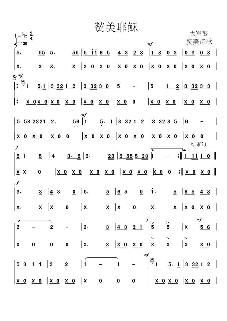 赞美耶稣/赞歌/赞一支最好的琴(大军鼓)分谱
