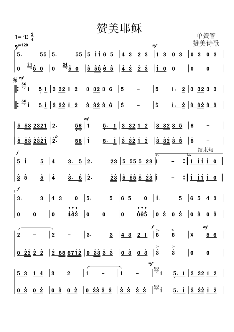 赞美耶稣/赞歌/赞一支最好的琴(单簧管)分谱