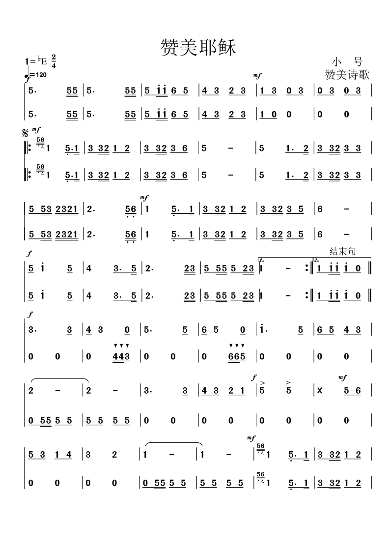 赞美耶稣/赞歌/赞一支最好的琴(小号)分谱