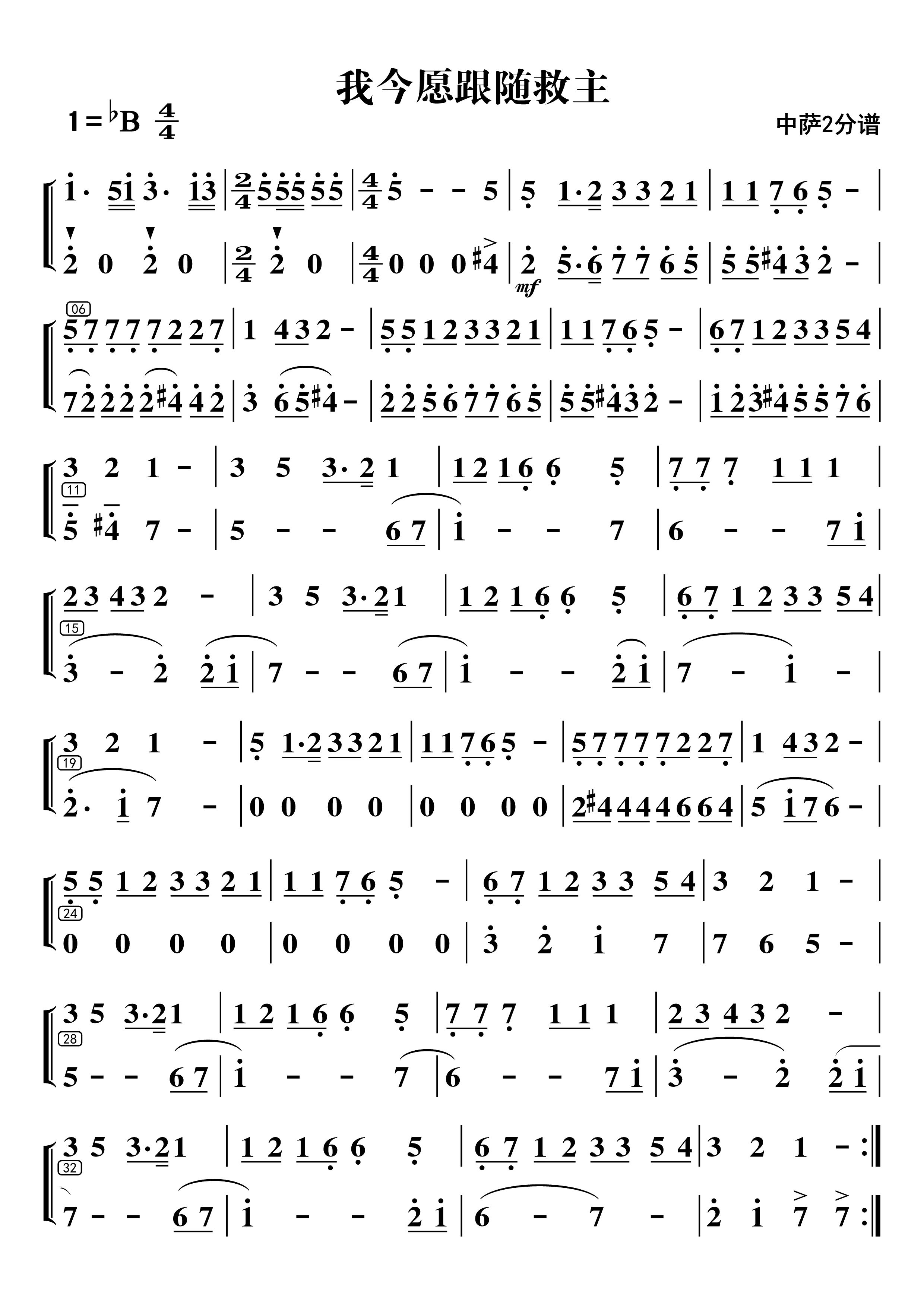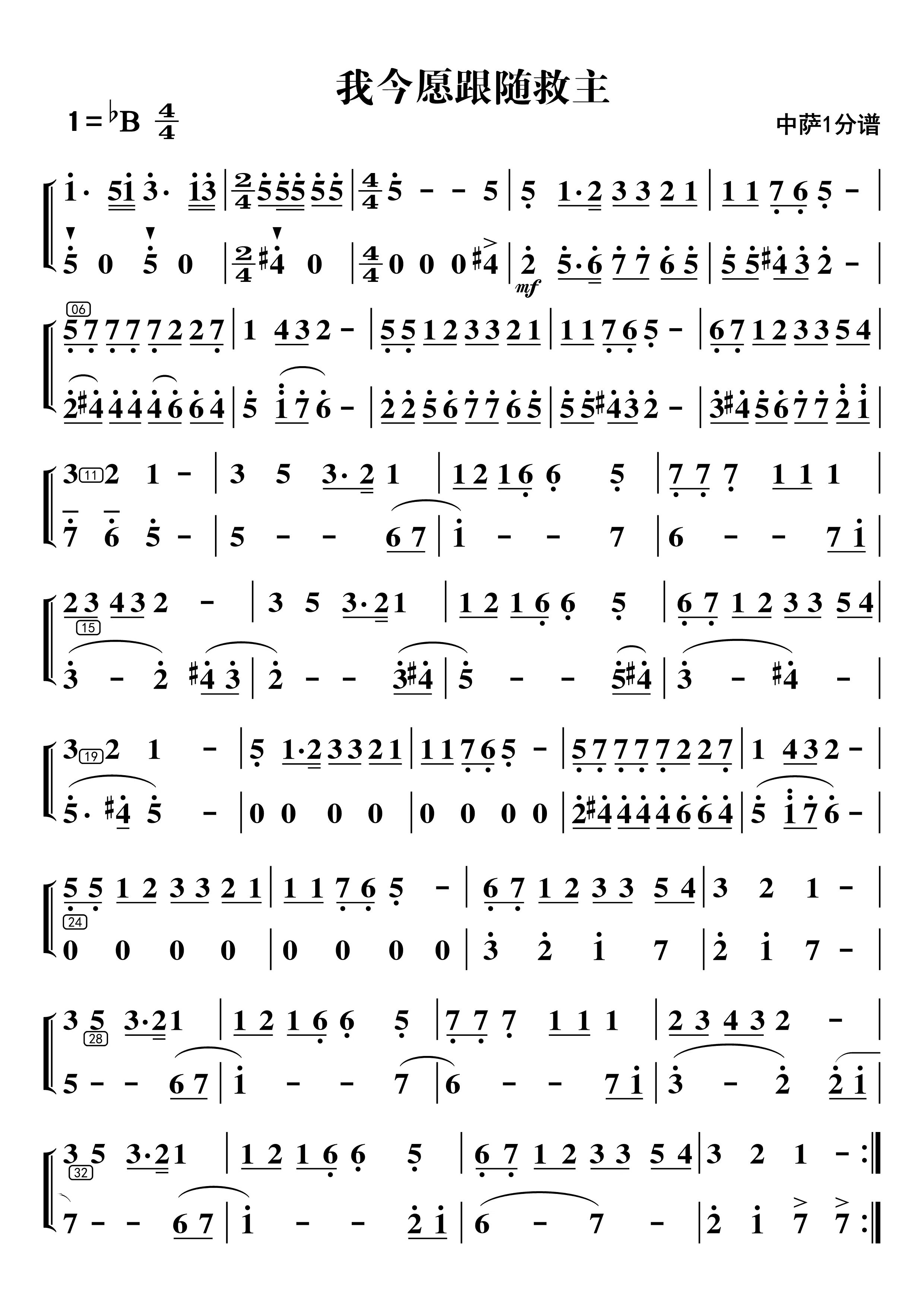 我今愿跟随救主(中萨1和2分谱)