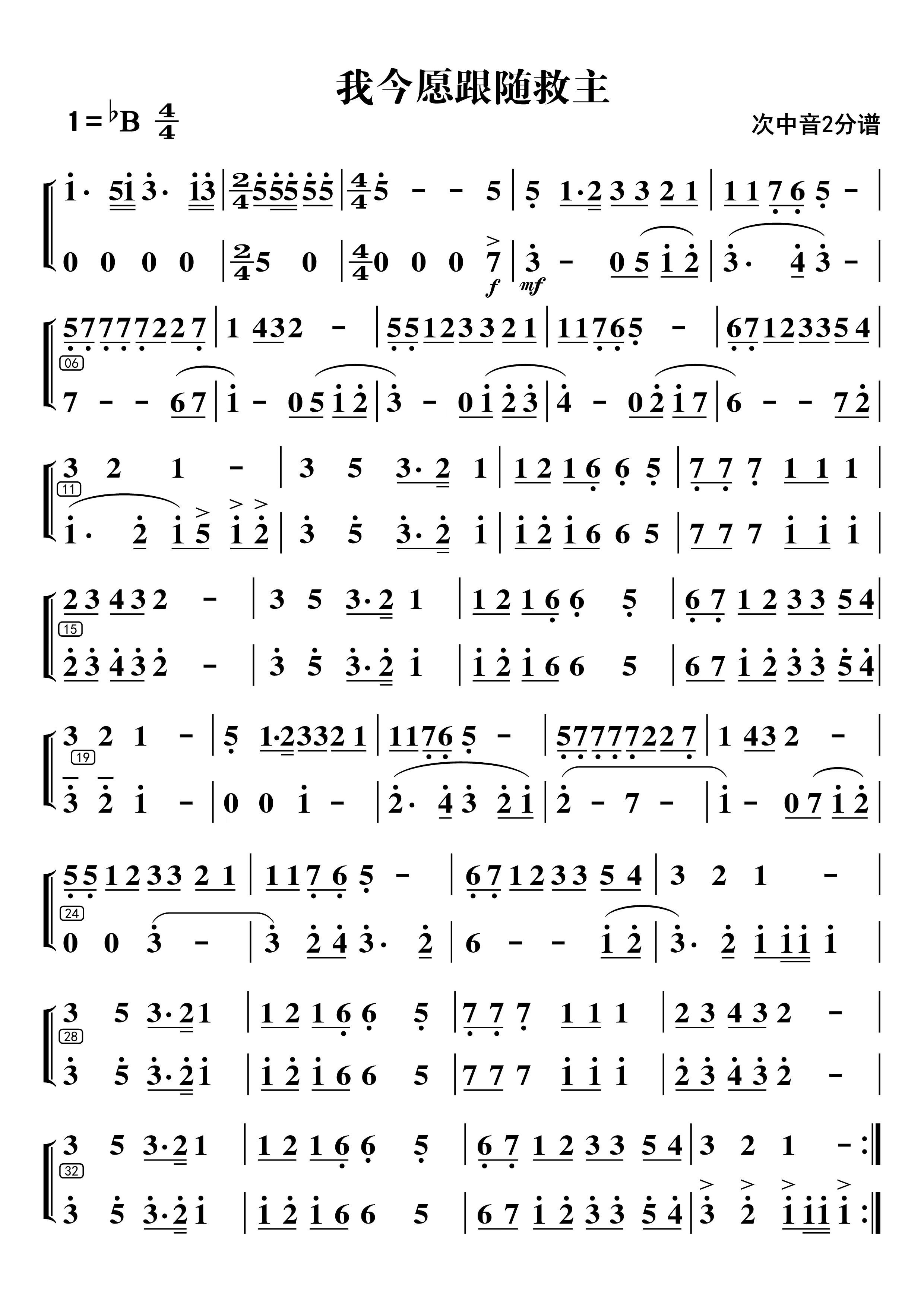 主如一颗明亮的晨星[二声谱]【管乐总谱(适合小型乐队)】