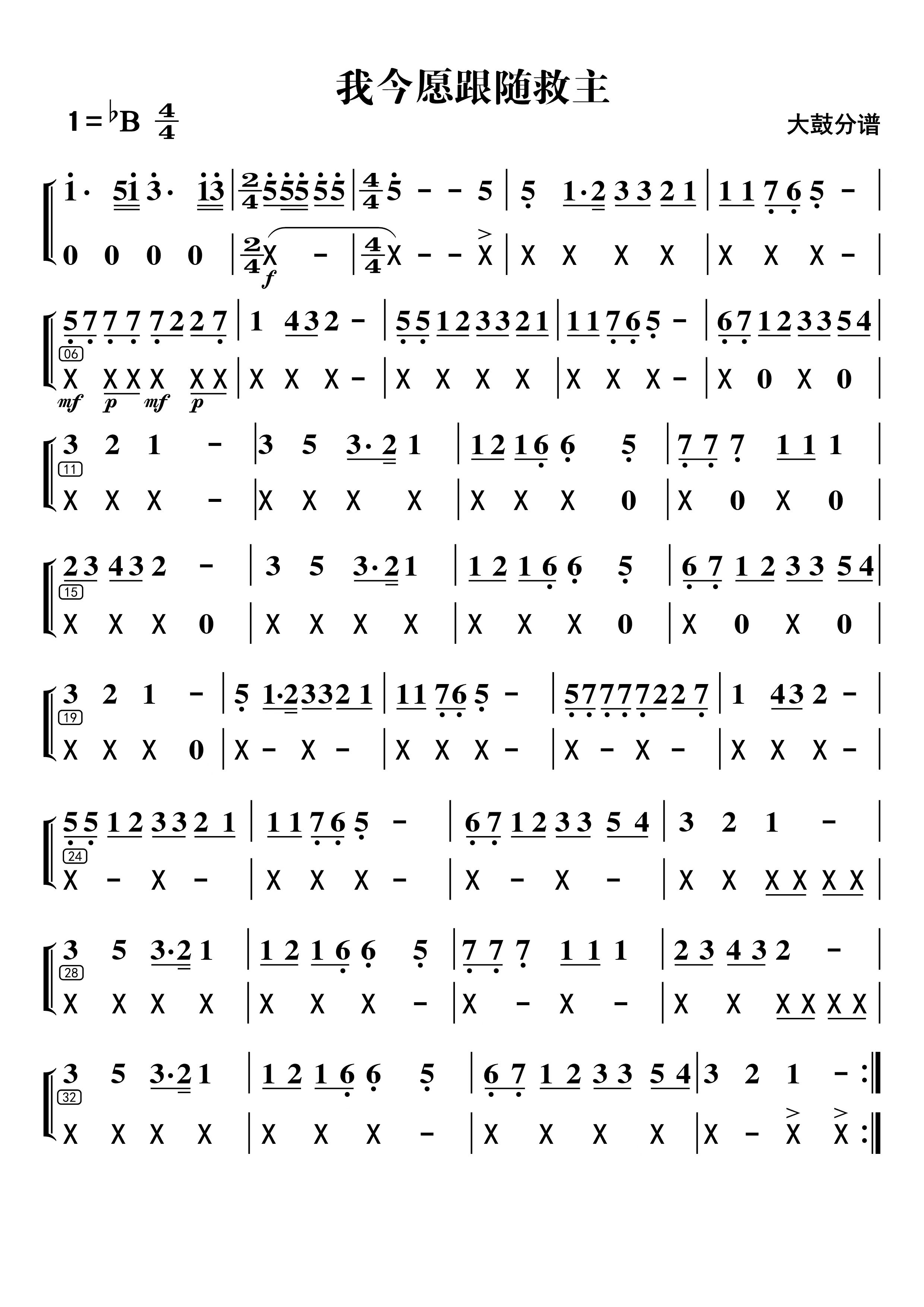 我今愿跟随救主(大鼓分谱)