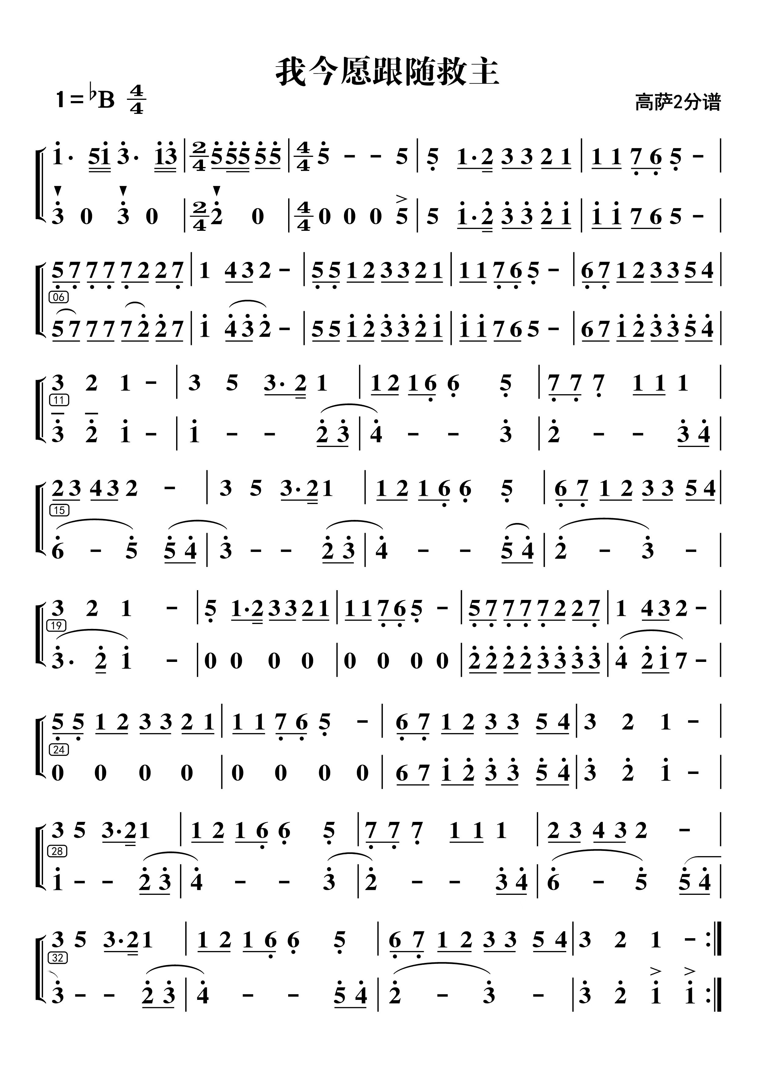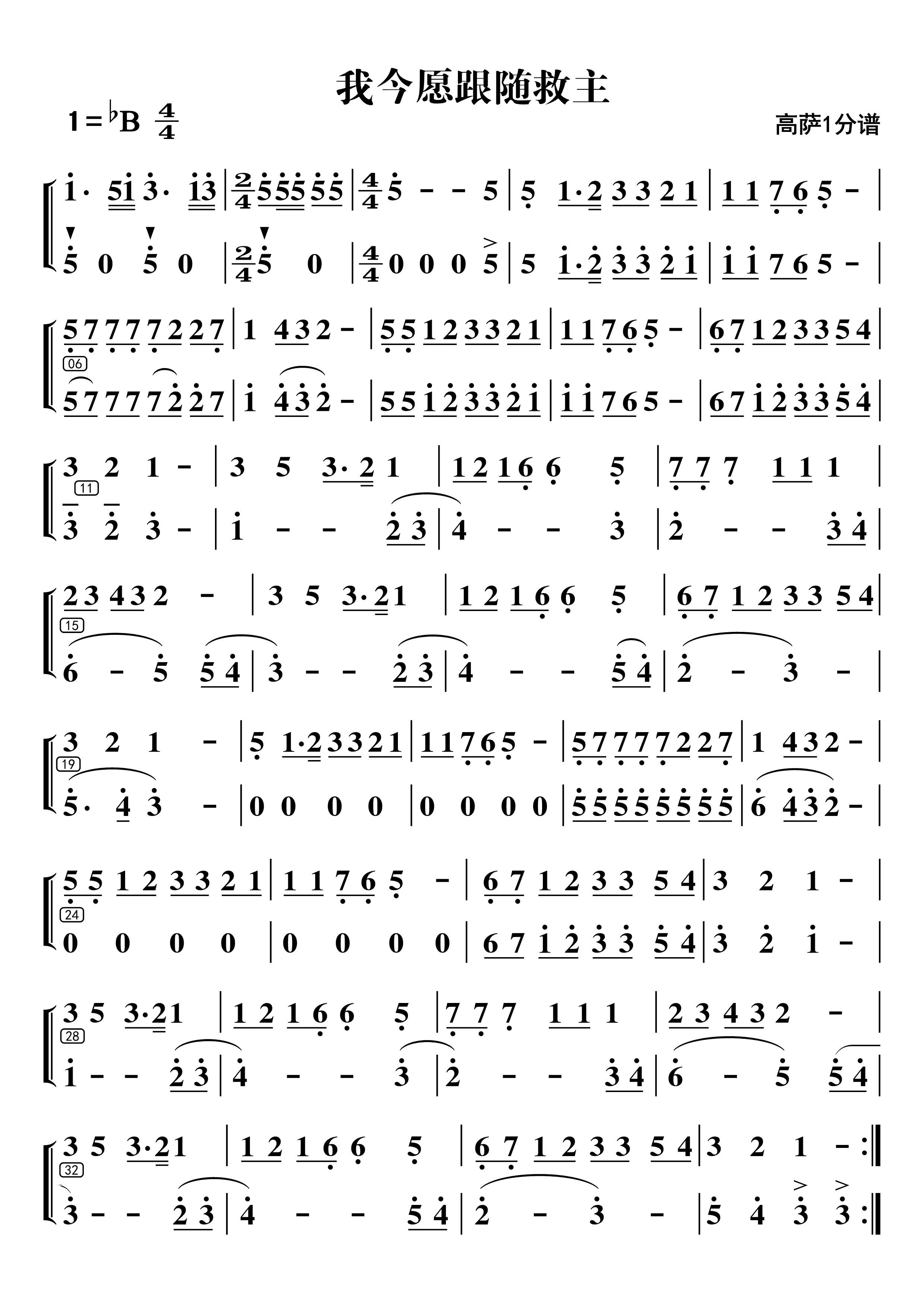 我今愿跟随救主(高萨1和2分谱)