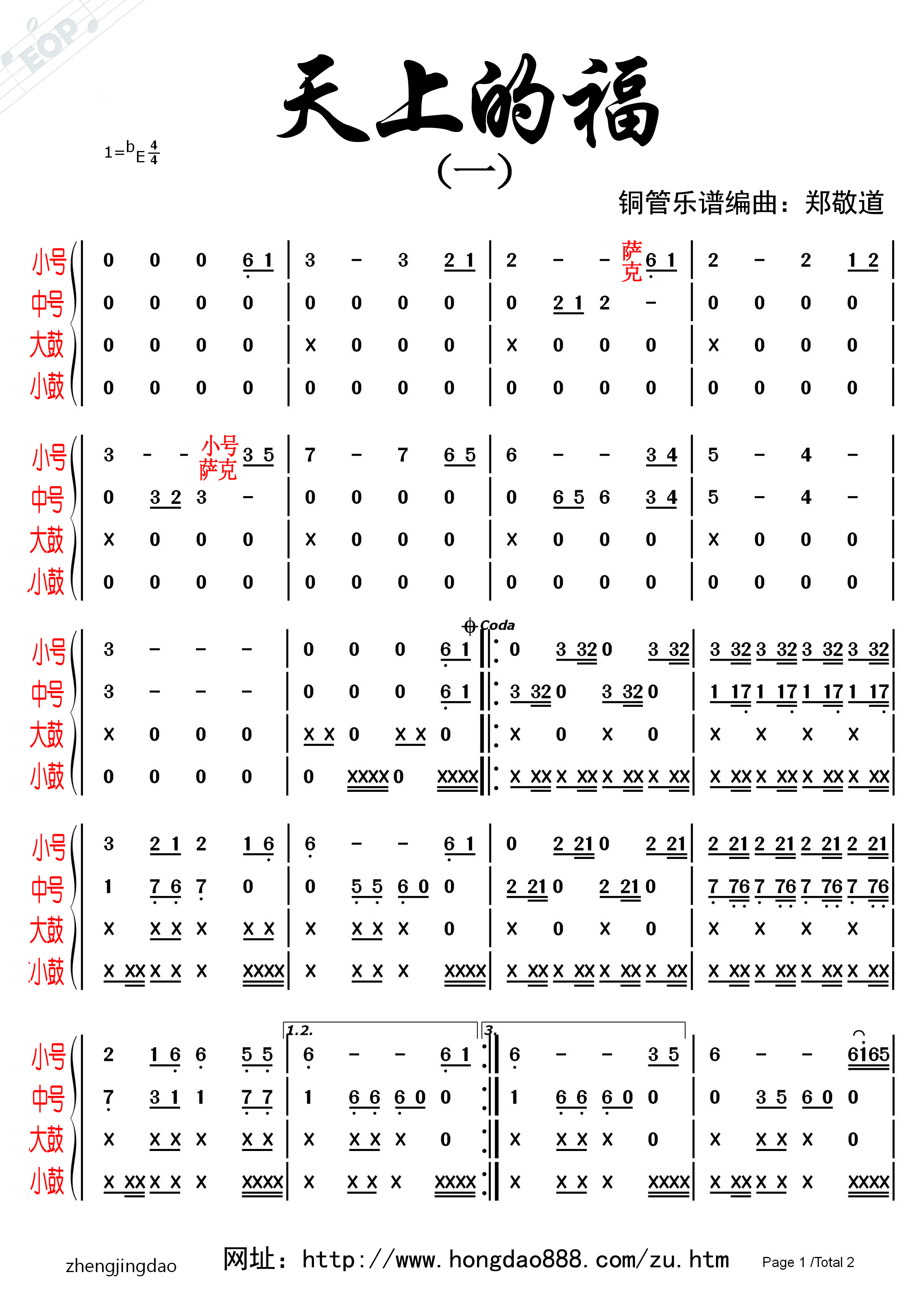 天上的福【教会管乐简谱】