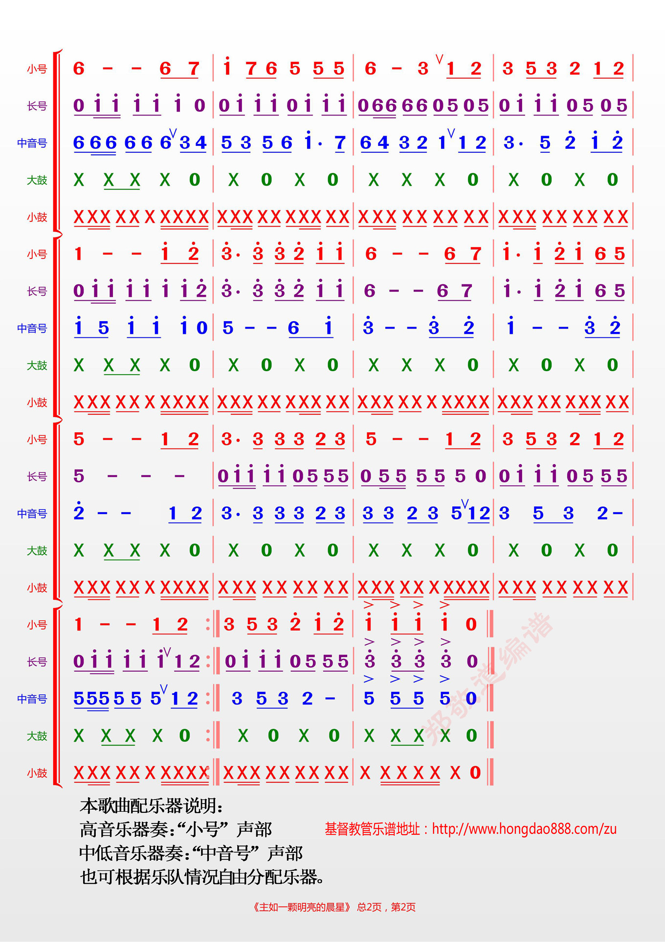 主如一颗明亮的晨星[二声谱]【管乐总谱…