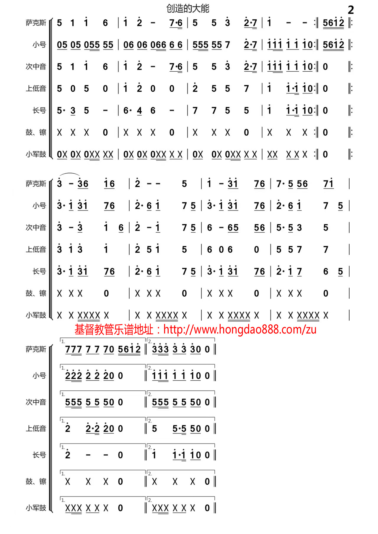 神创造的大能【管乐总谱】
