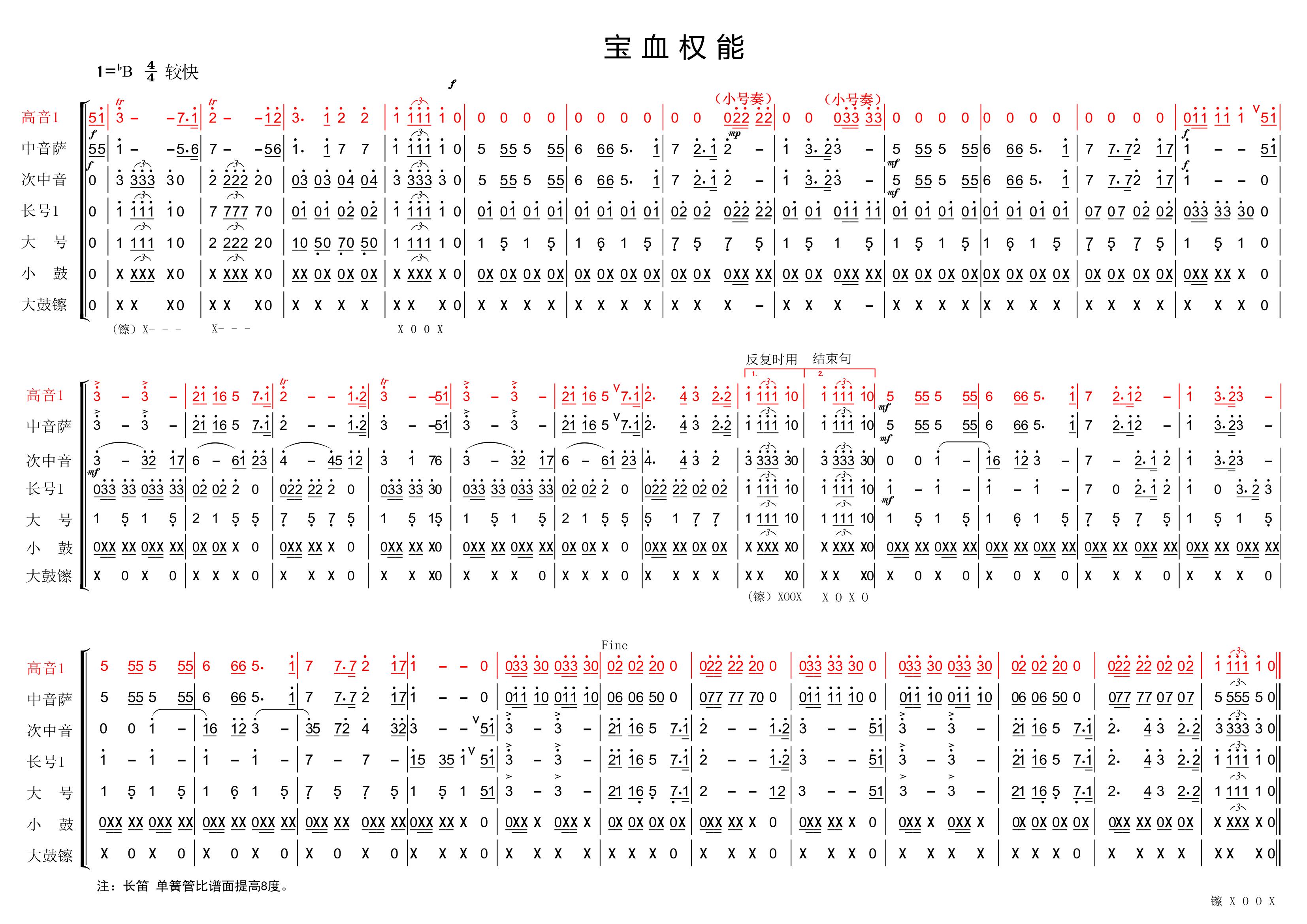 宝血权能【管乐总谱】