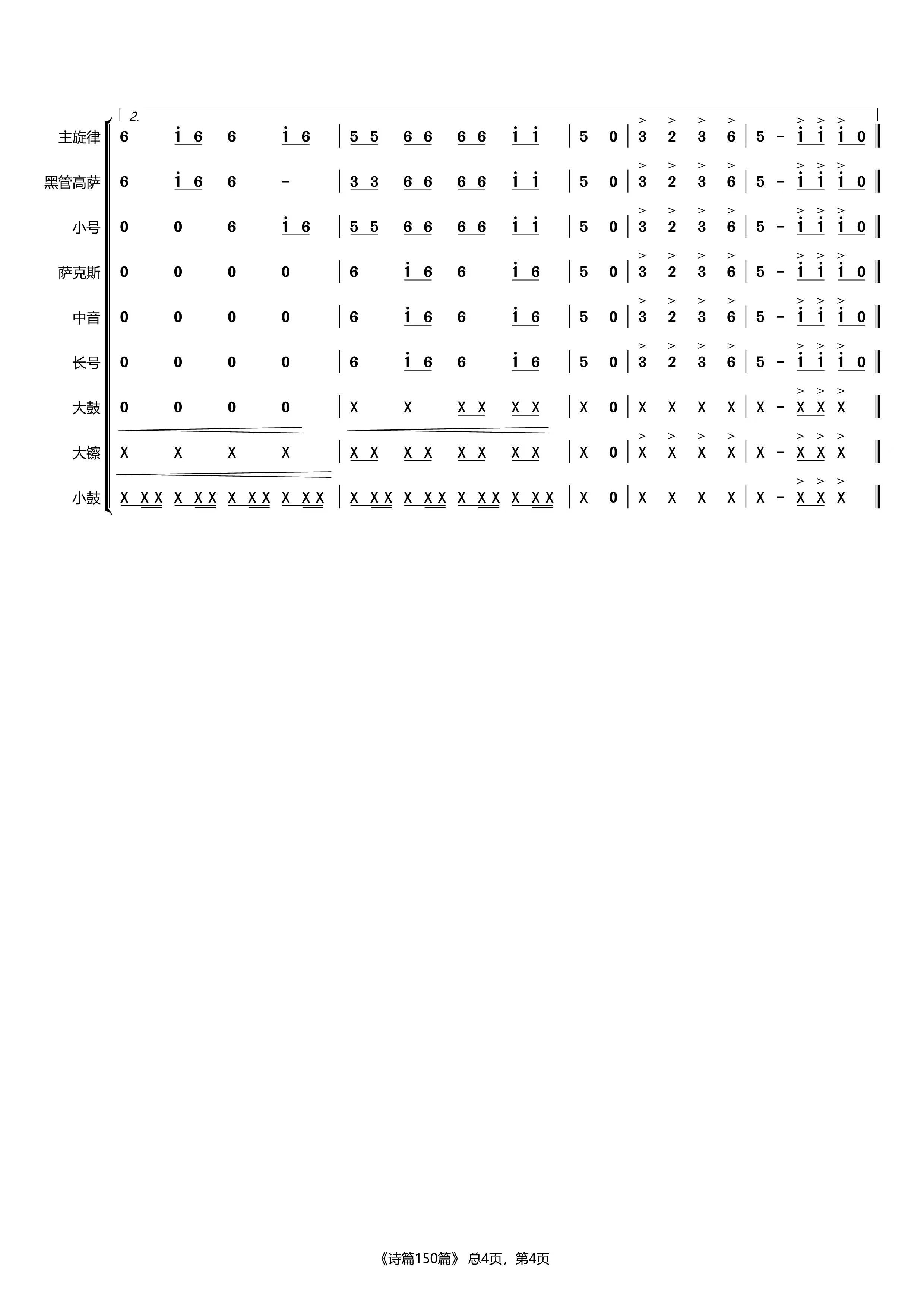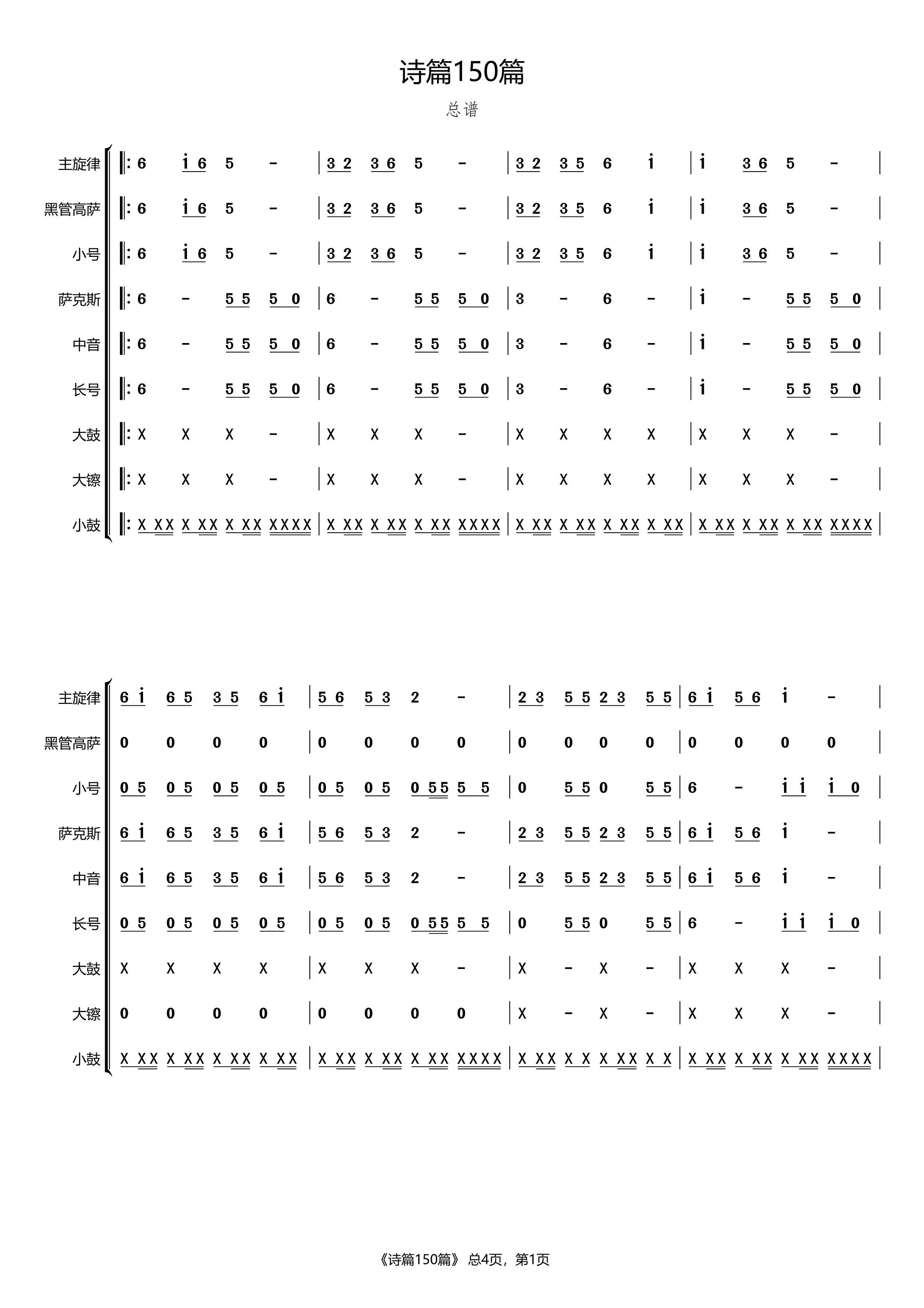 向耶和华唱新歌-四声部谱【诗歌:管乐…