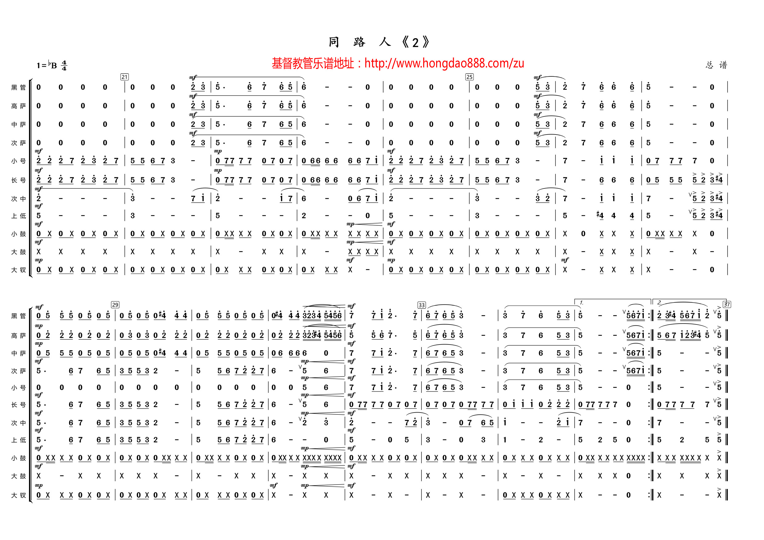 生命路(二声谱)【管乐简谱】