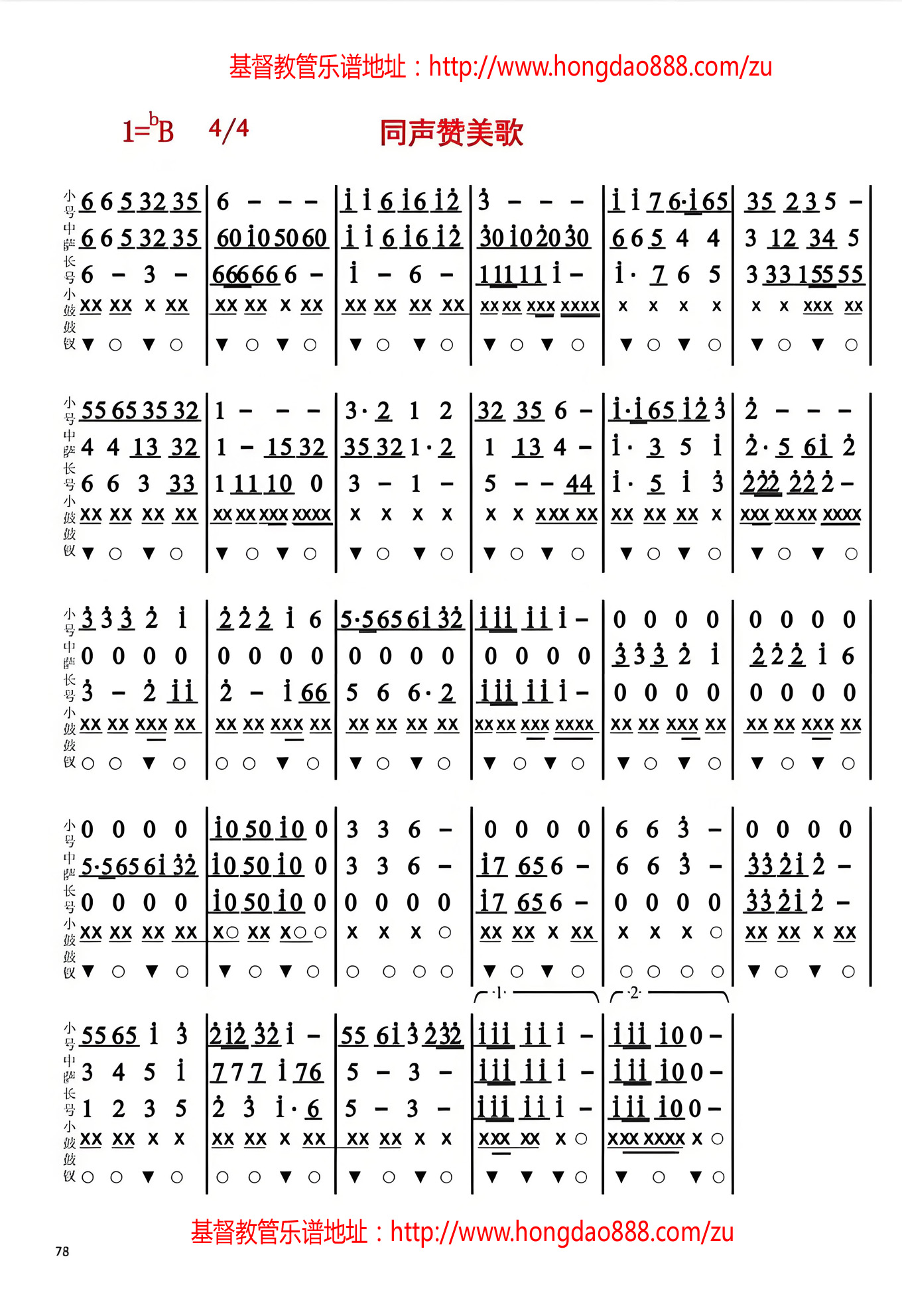 向耶和华唱新歌-四声部谱【诗歌:管乐…