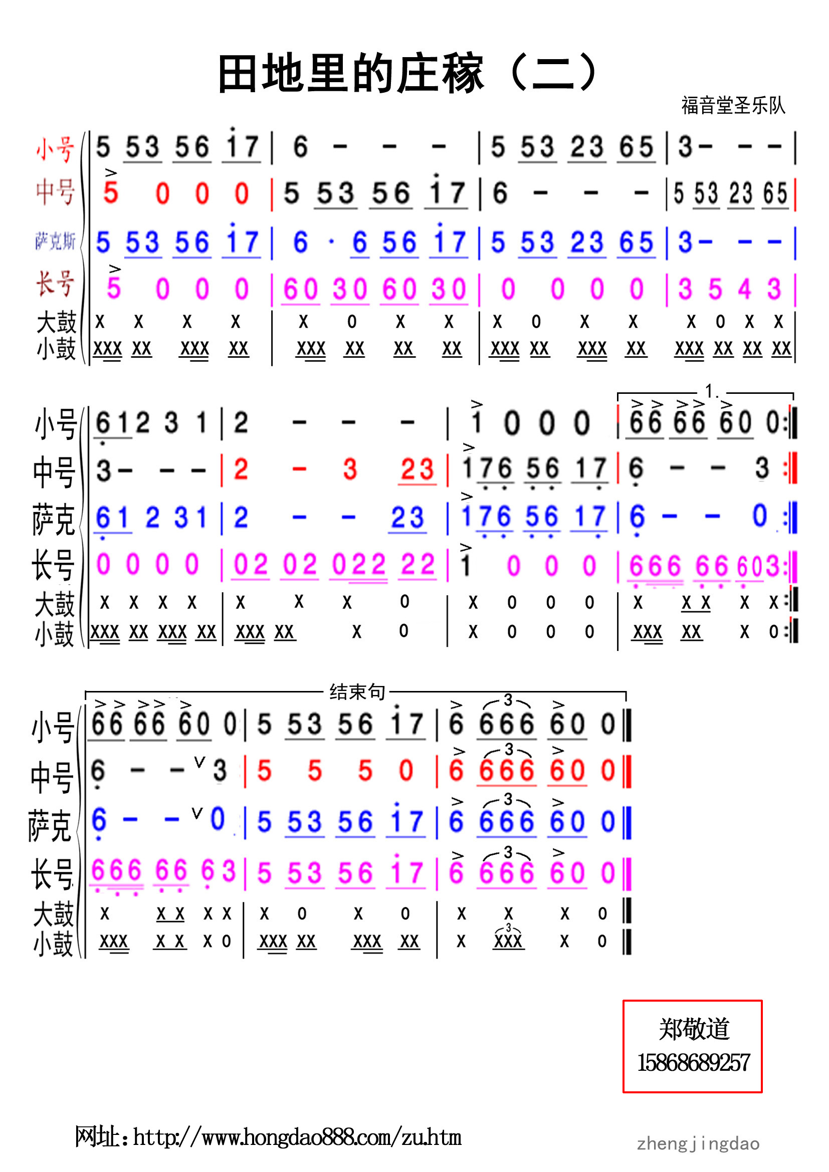 《家乡啊!家乡》→铜管乐谱网址:http://www.hongdao888.com/zu.htm